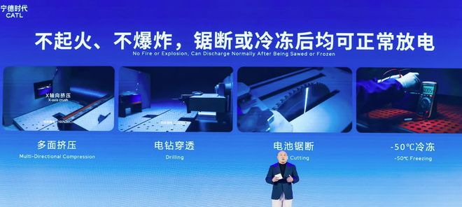 而宁德时代的理念与之呼应。宁德时代始终将安全刻进电池基因里。其研发的“钠新”电池,在安全性能上做到了极致,同时在满电状态下,经历多面挤压、电钻穿透、整体锯断等极端工况,电池无烟无感、不起火不爆炸,甚至电芯锯断后还能正常放电。