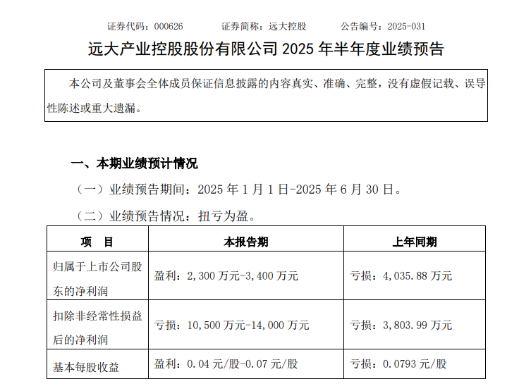 值得关注的是,远大控股在7月14日披露的2025年上半年业绩预告中称,预计归母净利润2300万元-3400万元,扭转了上年同期亏损的局面,但扣非净利润仍预计亏损1.05亿元至1.4亿元。其解释称扣除非经常性损益前后净利润存在较大差异,主要是因为在大宗商品贸易领域采取期现结合的业务模式,根据会计准则导致的差异。
