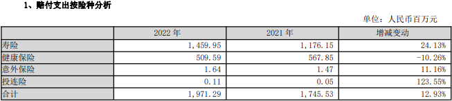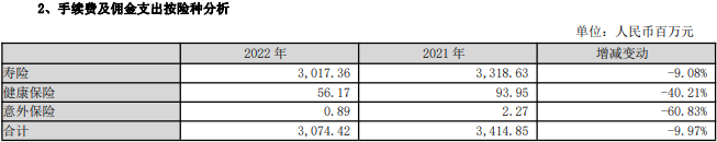 2022年,国华人寿赔付支出19.71亿元,同比增长12.93%,主要由于满期给付增加;手续费及佣金支出30.74亿元,同比下降9.97%,主要是受业务结构变化影响。
