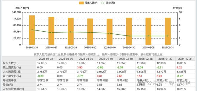 数据显示,截至5月31日,天茂集团股东人数约为12万户,人均流通股3.76万股,人均持股金额10.31万元。