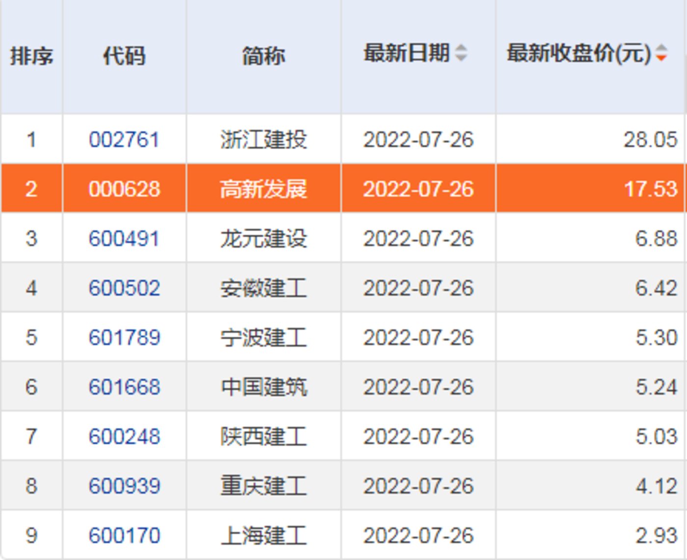 二级市场上,高新发展股价自今年5月份以来连续震荡走高,较最低点9.08元/股翻了近1倍。截止7月26日收盘,公司股价17.53元/股,在9家以建筑为主业的上市公司中排名第二,最新市值61.75亿元。