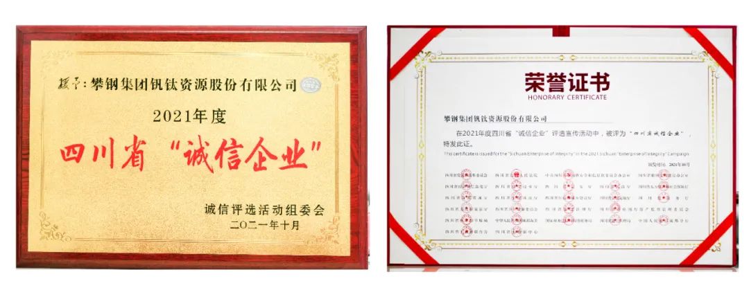 ▲2021年10月,钒钛股份获评四川省“诚信企业”。
