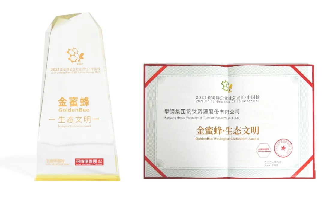 ▲2021年6月,钒钛股份荣获“2021金蜜蜂企业社会责任中国榜·生态文明”企业,责任实践案例入选《2021金蜜蜂责任竞争力案例集》。