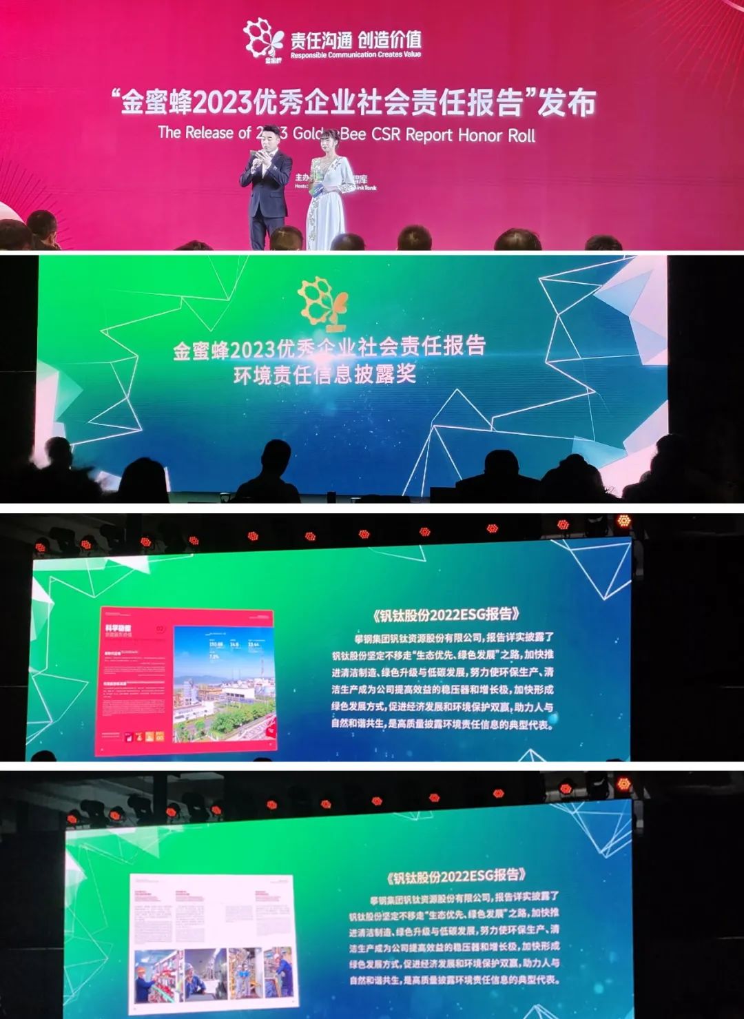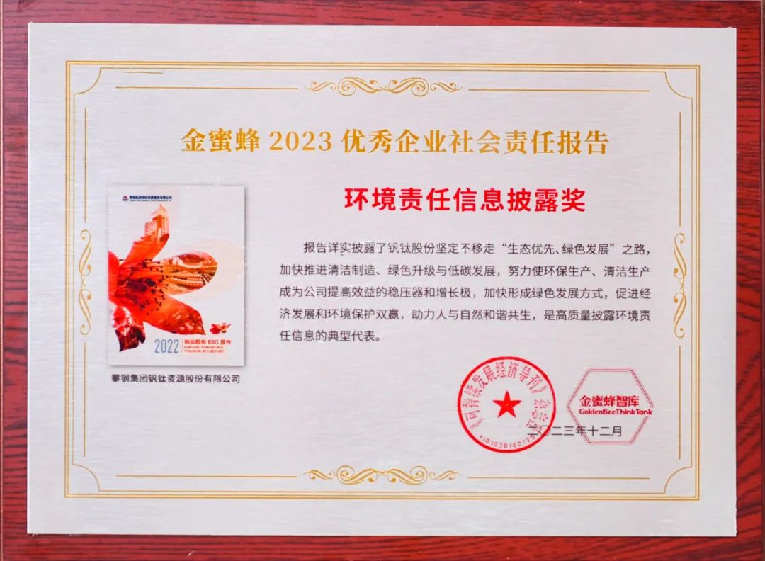 12月8日,第十六届中国企业社会责任报告国际研讨会在北京举行,钒钛股份受邀参加研讨,并荣获由《可持续发展经济导刊》杂志社和金蜜蜂智库联合颁发的“金蜜蜂2023优秀企业社会责任报告——环境责任信息披露奖”。