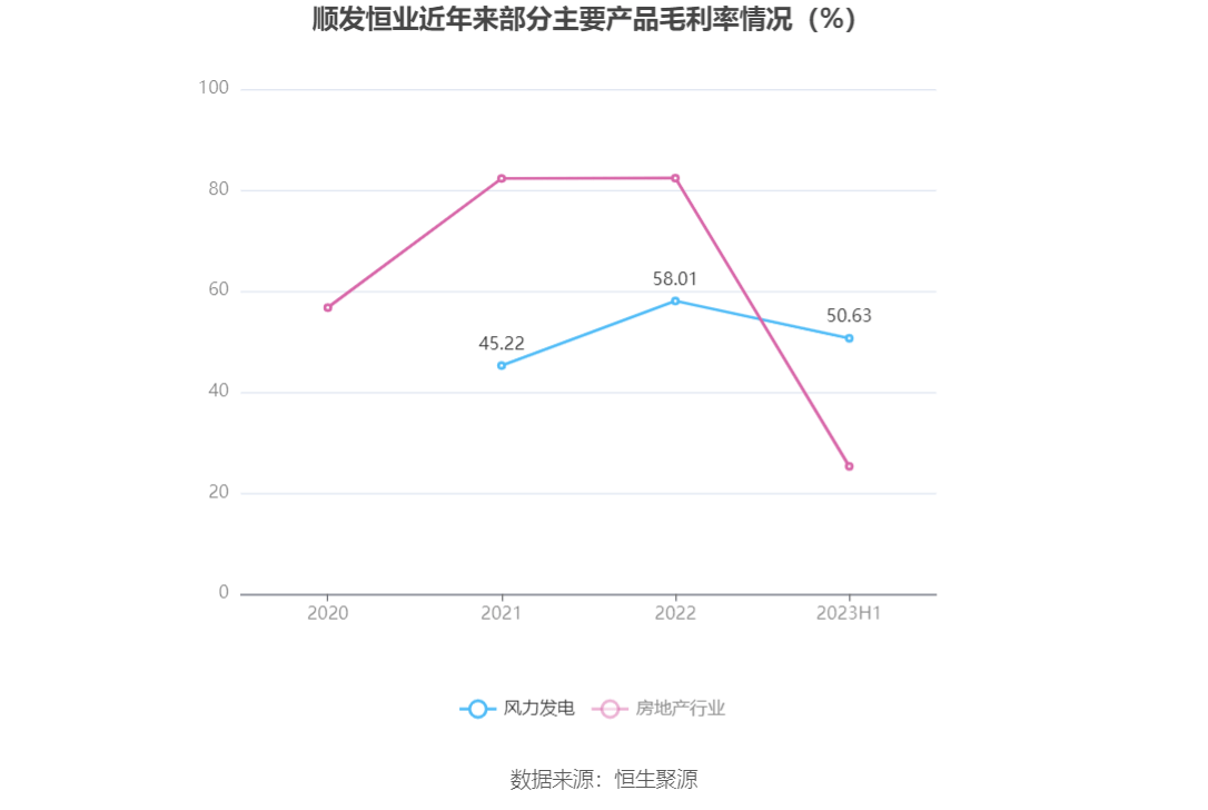 分产品看,物业管理服务、风力发电、房地产行业2023年毛利率分别为15.95%、50.63%、25.25%。