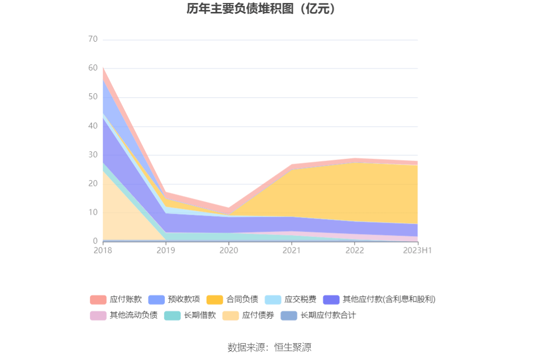 负债重大变化方面,截至2023年二季度末,公司合同负债较上年末减少0.39%,占公司总资产比重上升1.57个百分点;应付账款较上年末减少4.57%,占公司总资产比重上升0.04个百分点;一年内到期的非流动负债较上年末减少10.01%,占公司总资产比重下降0.01个百分点;预收款项较上年末减少4.30%,占公司总资产比重不变。
