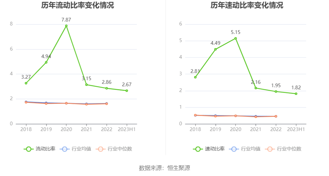2023年上半年,公司流动比率为2.67,速动比率为1.82。