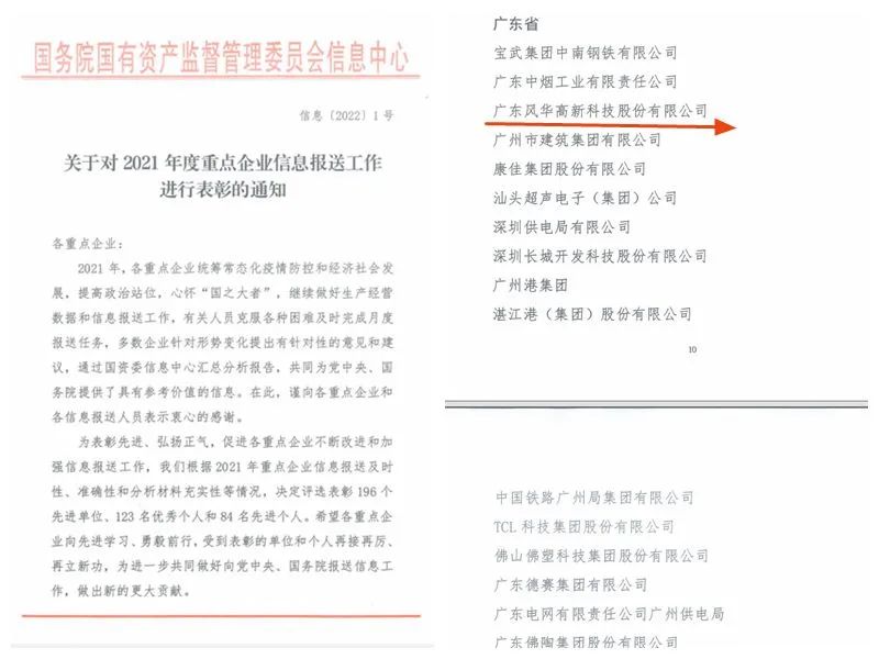 风华高科荣获“2021年度重点企业信息报送工作先进单位”称号,财务管理部王璐莹荣获“2021年度重点企业信息报送工作优秀个人”称号,风华高科及报送信息人员已连续七年获此表彰,且是广晟集团下属公司中唯一殊荣的单位。