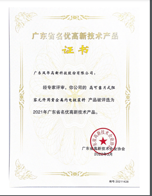 近日,风华高科“高精度高Q叠层高频电感”和“高可靠片式阻容元件用贵金属内电极浆料”两款产品凭借科技创新能力突出、技术指标国际领先、对产业发展价值高等综合优势,成功获评为“2021年广东省名优高新技术产品”,进一步彰显了风华高科在被动元器件及电子材料领域的综合优势与核心竞争力。