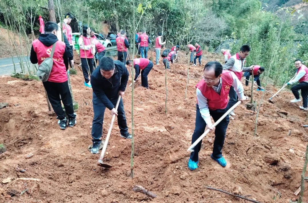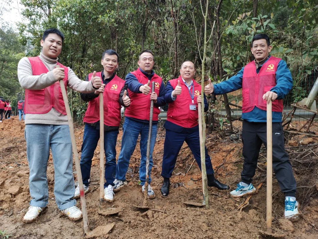 风华高科党委积极响应广晟控股集团党委关于“向春天出发,建绿美晟林”的工作号召,以“党建红”引领“生态绿”,通过主题党日、认种认捐等一系列活动,迅速带动广大党员干部职工掀起植树添绿的热潮,先后种植、捐献树苗逾1000棵,以实际行动为推进“百千万工程”和广东绿美生态文明建设贡献国企力量,彰显国企担当。