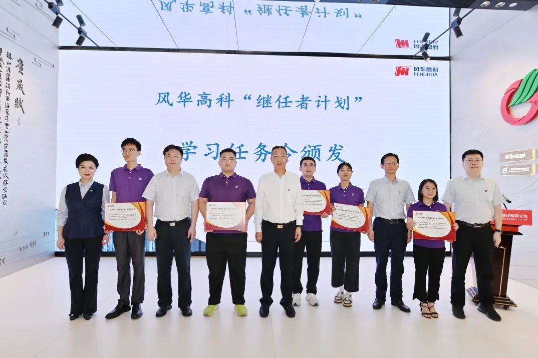 汪东兵向风华高科“继任者计划”的学员代表授予了象征着信任和期盼的班旗,代表着风华高科事业薪火相传、生生不息。与会领导向学员代表颁发了“继任者计划”学习任务令,希望“继任者”们深入践行集团FAITH经营理念,知行合一,追求卓越,圆满完成一年期的学习培养任务。