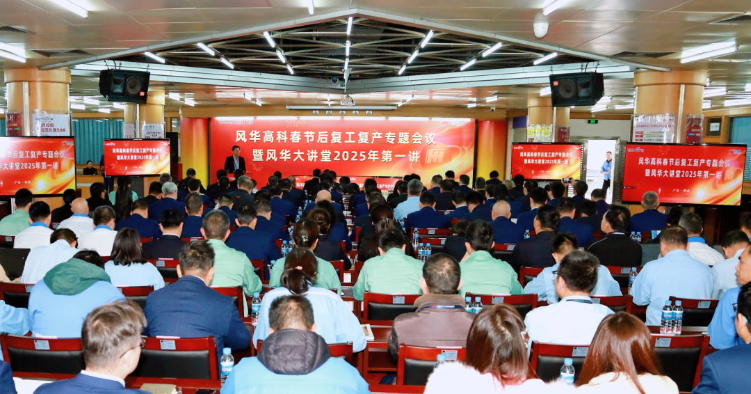 “岭南春来早,人勤地生宝”。为贯彻落实广东省高质量发展大会精神,2月6日上午,风华高科召开春节后复工复产专题会议暨风华大讲堂2025年第一讲,动员风华高科全员上下凝聚发展共识,坚定必胜信心,锚定高质量发展首要任务,擂起催征鼓、吹响冲锋号,守正创新再出发,笃行精益勇攀高。公司党委书记、董事长李程,党委副书记、董事、总裁杨晓平出席会议并讲话,公司领导、高管、顾问,中层管理人员,职能部门高级主管、生产单位各部门负责人等136人参加会议。