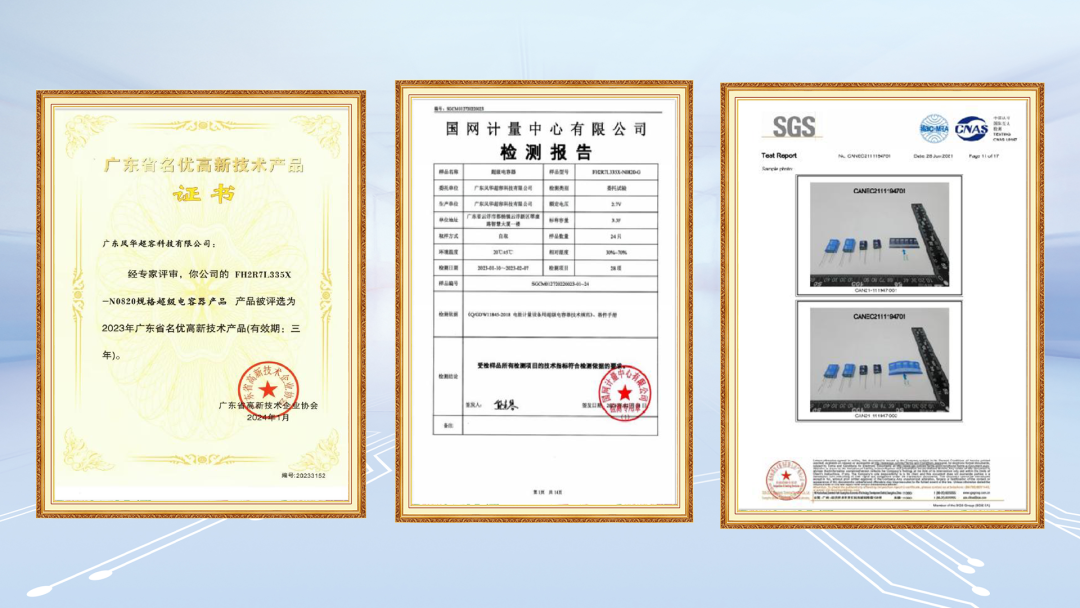 认证体系完备。超容产品通过国网计量中心、ROHS、REACH等第三方权威认证。公司以权威认证体系为基准,构建产品性能的可信验证范式,通过全链路标准符合性验证,为性能可靠性提供机制化保障。