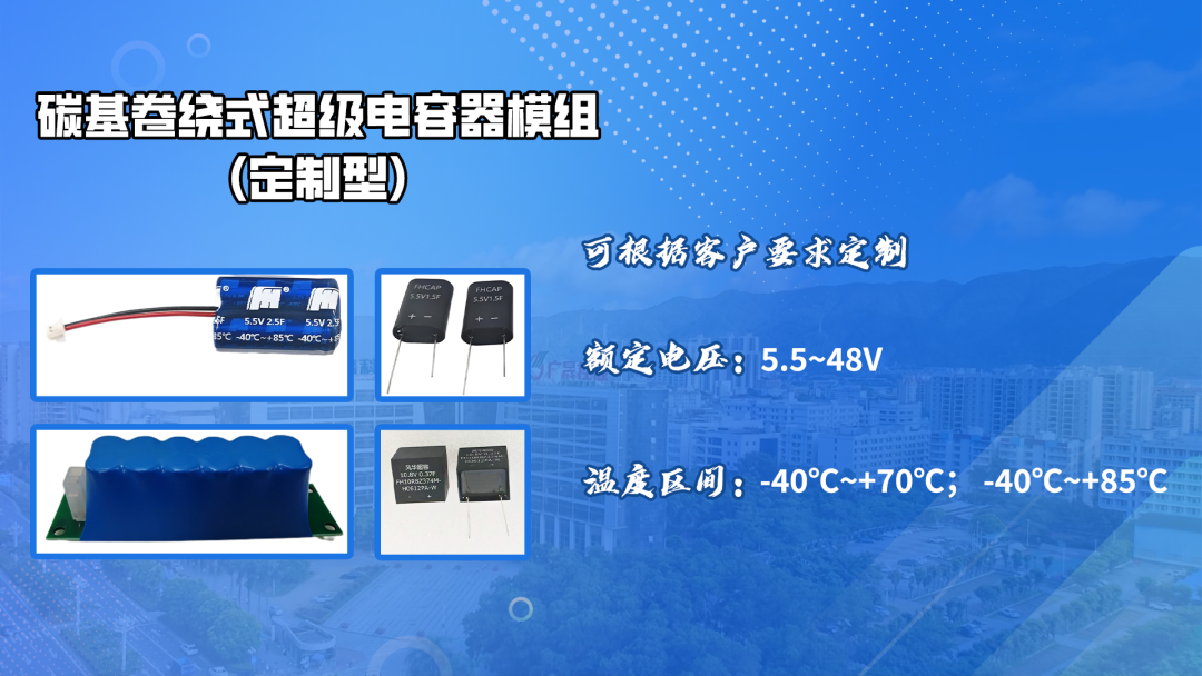 风华高科超级电容器产品具有高可靠性、低内阻、低漏电、高功率密度特性,在多领域应用中展现价值优势: