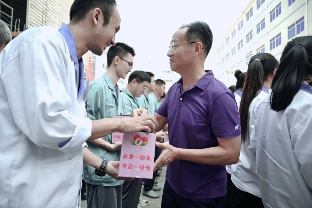 发放的所有荔枝从采购到配送,公司全程严把品质关,确保送达职工手中的每一颗都新鲜饱满、果香浓郁,尽显岭南佳果的地道风味。拿到新鲜清甜的荔枝时,有的员工感慨:“这是我今年吃过最甜的荔枝,让我们切实感受到公司帮扶助农的暖心举措,这样的‘福利’特别有意义。”还有的员工表示:“这份福利不仅是夏日的清凉慰藉,更让我们看到了公司积极践行社会责任的担当。每次品尝荔枝,都能感受到公司对员工的关怀,以及助农兴农的满满诚意。”