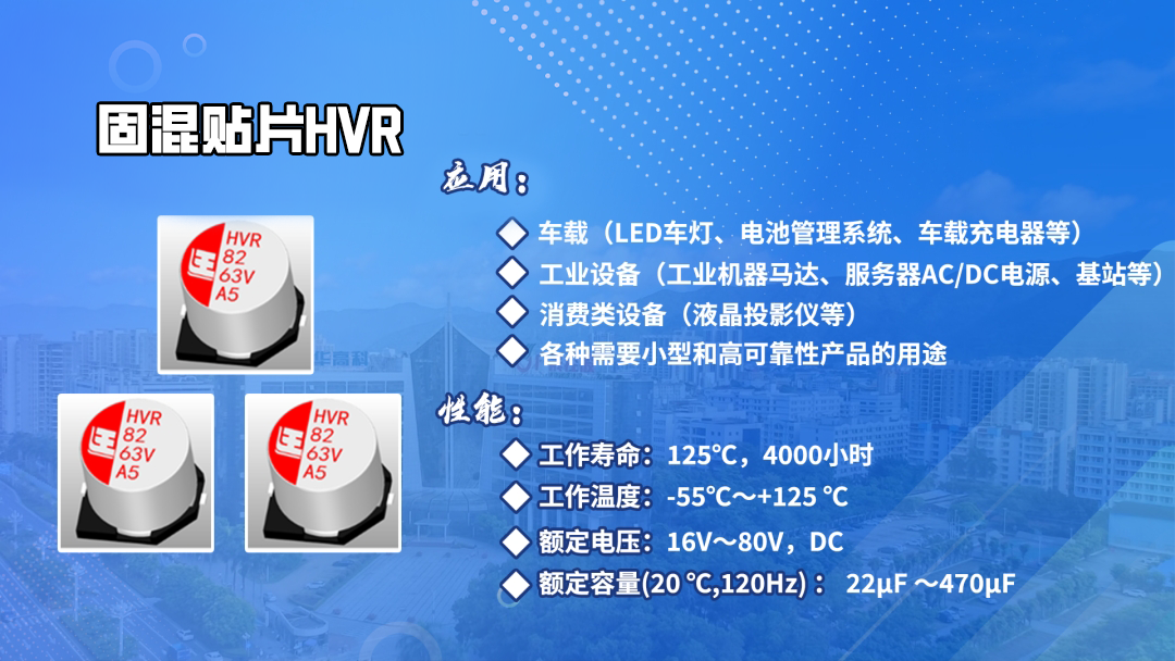 铝电解电容器:HVR系列产品具有高温长寿命、30g高抗振动及耐大纹波电流能力;能应对新能源汽车二合一的OBC&DCDC整机性能,及三电系统高振动要求。