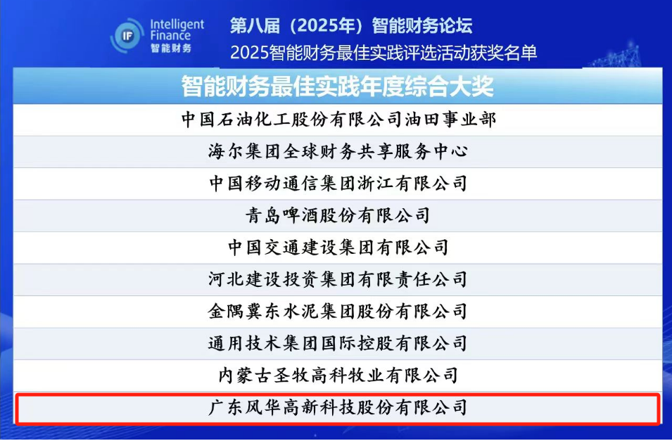 本届论坛以中国AI+财务行动为主线,此次“智能财务最佳实践”评选历时近8个月,历经单位申报、专家初评、现场调研、专家终评、公众网络投票环节的层层筛选而得出。 风华高科 荣获“智能财务最佳实践年度综合大奖”,彰显了公司在智能财务与企业数字化融合创新领域的领先地位与实践典范价值。