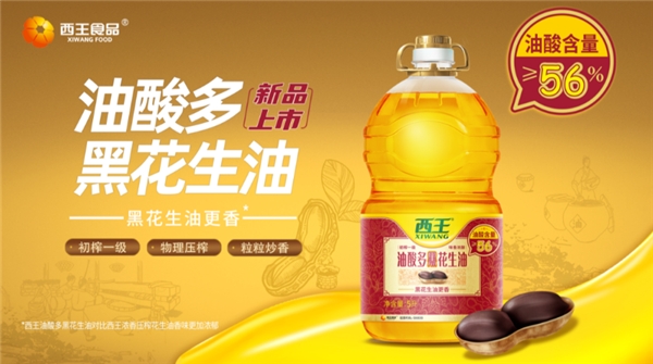 西王油酸多黑花生油产品,臻选高油酸花生及珍贵的黑花生品种,经过传统压榨、粒粒炒香工艺压榨成油,香味更加浓郁。其中油酸(omega-9)含量≥56%,含有亚油酸和维生素E,更有益于人体消化吸收等。