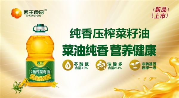 “菜油纯香,营养健康”,西王纯香压榨菜籽油精选非转基因油菜籽。经过物理压榨精炼,降低了游离脂肪酸、磷脂、色素含量,还会除去油的异味,保持了菜籽油的新鲜、营养和健康。产品在生产过程中严格把控芥酸含量,使芥酸含量<3.0%。含有丰富的亚油酸、亚麻酸等人体不能自身合成的必需脂肪酸,还含有丰富的天然维生素E及油酸,有效提升人体免疫力,让每餐更健康!