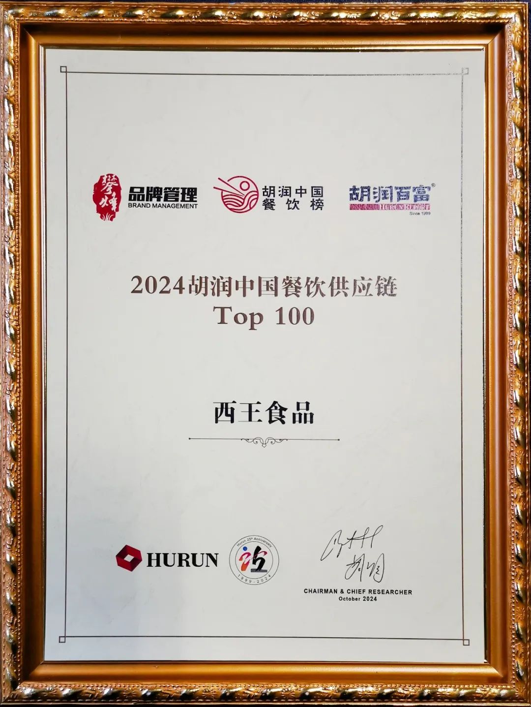近日,胡润研究院携手品牌管理公司攀烽联合发布《2024胡润中国餐饮供应链TOP100》榜单,列出了中国最具影响力的餐饮供应链领域的典范企业,西王食品顺利上榜。这是西王食品今年四月份获评第四届中国餐饮产业红牛奖“2024年度餐饮供应链百强企业”之后,在餐饮供应链领域获得的又一殊荣,再次彰显了企业的品牌实力和强大竞争力。