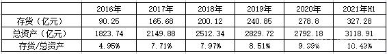 根据财报显示,今年上半年公司的存货为327.28亿元,同比增长26.31%,占总资产的比重为10.5%。从过去几年的数据来看,无论是公司存货还是占总资产的比重,都呈不断增加趋势。