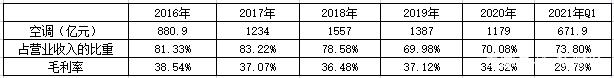 可以看到,与去年同期相比,公司来自“空调”业务的收入由413.33亿元增加至671.94亿元,同比增加62.57%。不过,与之相对应的是,来自“生活电器”业务的收入却裹足不前,依旧维持在22亿元左右。至于说“智能装备”业务,在公司整体营收中的比重可以忽略不计,但即便如此也从2.09亿元下降至1.98亿元。