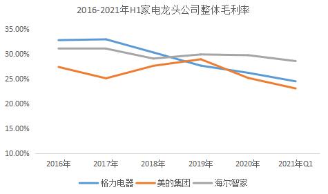 2016-2020年,公司的整体毛利率分别为32.7%、32.86%、30.23%、27.58%和26.14%,呈不断下降趋势。今年上半年,这一数值进一步下降至23.74%。