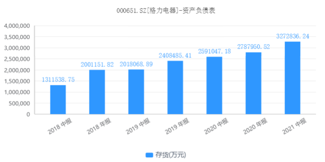 除了竞争中处于被动,格力电器的存货持续增加,上半年末的存货达到了327.28亿元。