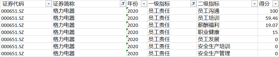 通过中诚信的ESG评级指标,可以看到格力电器的员工责任指标分数较低。其中,薪酬福利分数仅为19分。