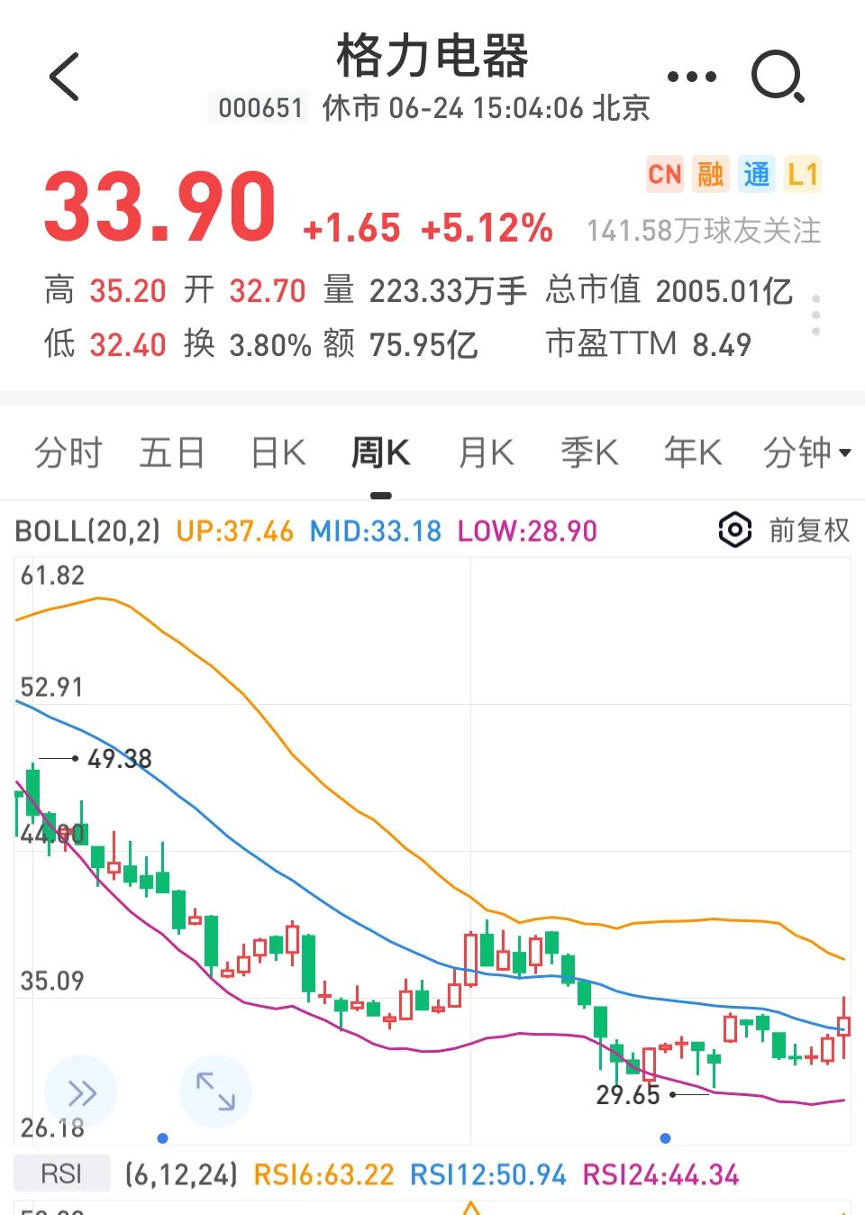 越跌越买,可见个人投资者对格力的喜爱。