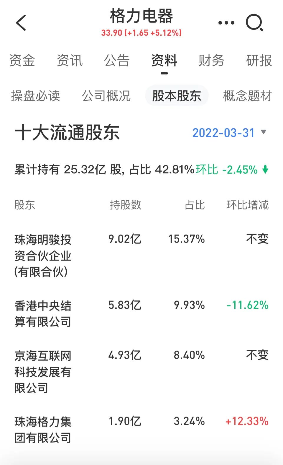 大股东低位减持格力,