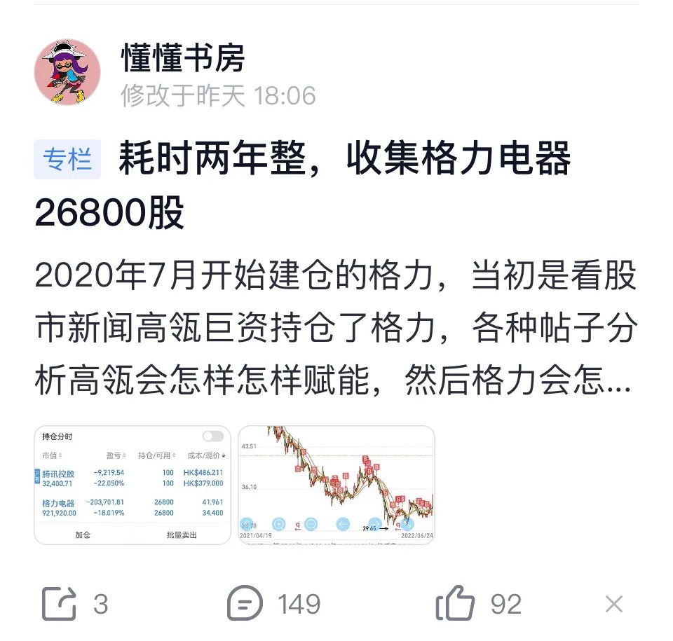 在雪球App上,有不少格力电器的铁粉们经常发言,同步格力公司的经营进展、销售进程、管理动态等,“爱”得极为深沉。