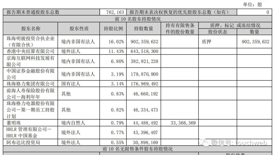 截至2022年6月30日,高瓴旗下珠海明骏投资合伙企业(有限合伙)持股为15.26%,香港中央结算有限公司持股为9.65%,京海互联网科技发展有限公司持股为6.47%,中国证券金融股份有限公司持股为3.04%,珠海格力集团有限公司持股为2.3%,前海人寿保险股份有限公司-海利年年持股为0.79%;