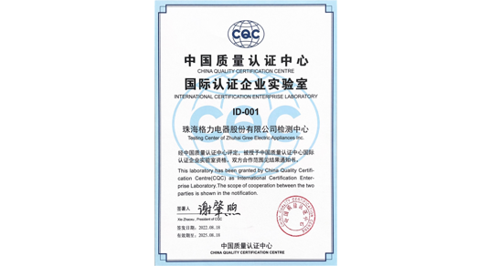 此次获得CQC的认可,意味着格力的企业实验室不亚于国际权威第三方检测机构。可独立完成产品检测并出具检测报告,可在CQC认证范围内直接申请国际证书。