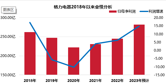 按照归母净利润中值计算,预计格力电器2023年实现归母净利润281.50亿元,超过2018年的262.03亿元,再创历史新高;归母净利润增速达到14.90%,为2019年以来最快增速。