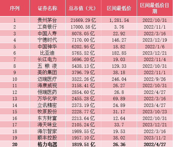 格力电器重资回购股份,表明公司对未来发展看好,给投资者积极信号。格力电器属于沪深300个股,从市场表现来看,今年12月21日,该指数最低收至3283.99点,创出2019年3月之后的新低,这意味着从2020年开始的核心资产行情全部上涨(最高5930.91点)已经抹平。