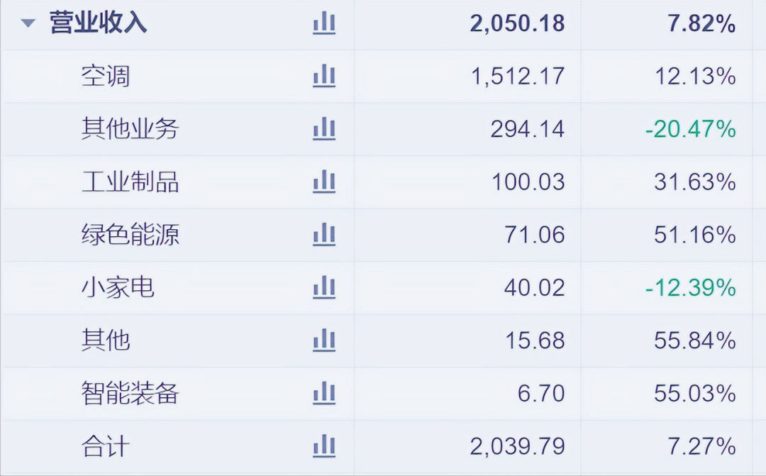 2023年报显示,格力电器(000651)完成总营收2050亿元,再次站在2000亿元以上,营收增长7.8%,比2022年0.3%增速大为改善。