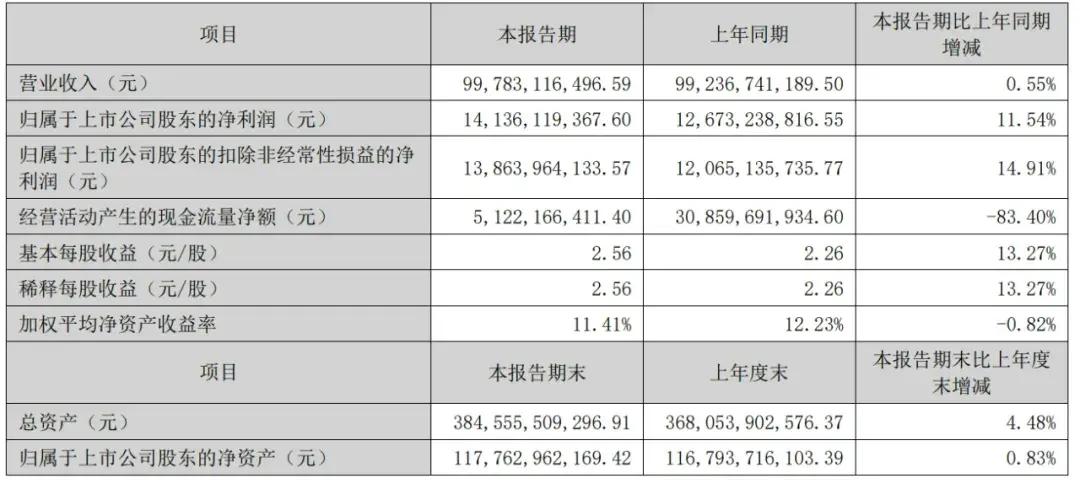 格力电器2024年上半年净利141.36亿,较上年同期的126.73亿元增长11.54%;扣非后净利138.64亿,较上年同期的120.65亿元增长14.91%。