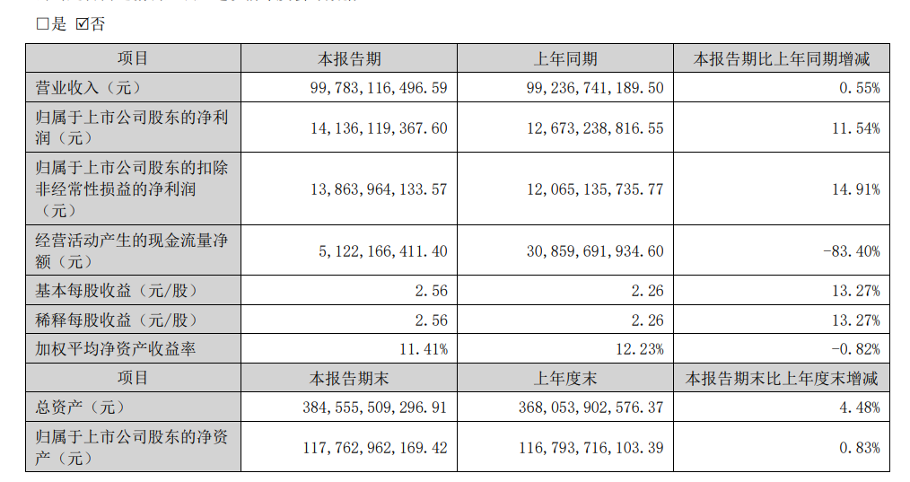 2024上半年,格力电器营收为997.83亿元,较上年同期的992.37亿元增长0.55%;归属于上市公司股东的净利润141.36亿元,同比增长11.54%。
