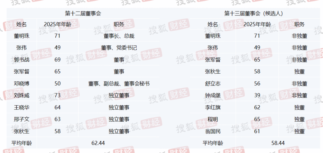 另一方面,69岁的郭书战、50岁的邓晓博等两位第十二届董事会非独董成员,没能出现在下一届候选名单中。