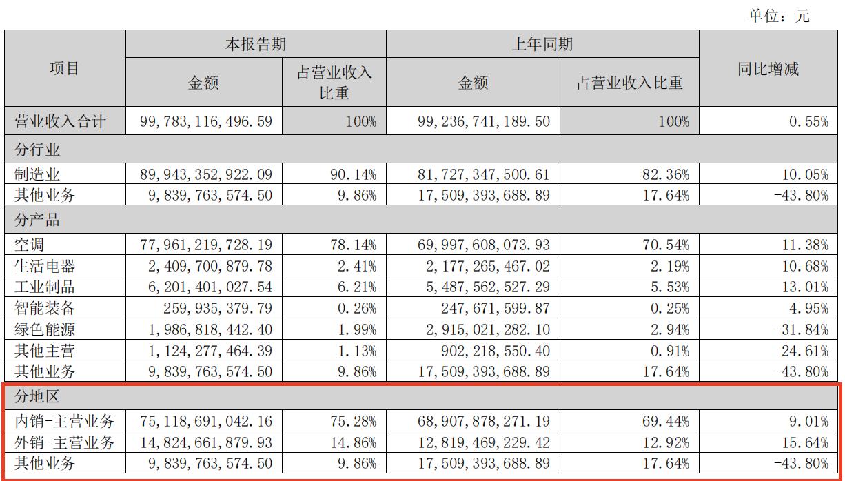 记者查询格力电器2024年中期财报注意到,报告期内,格力电器外销业务总营收148.25亿元,同比增长15.64%,占总营收比重为14.86%。