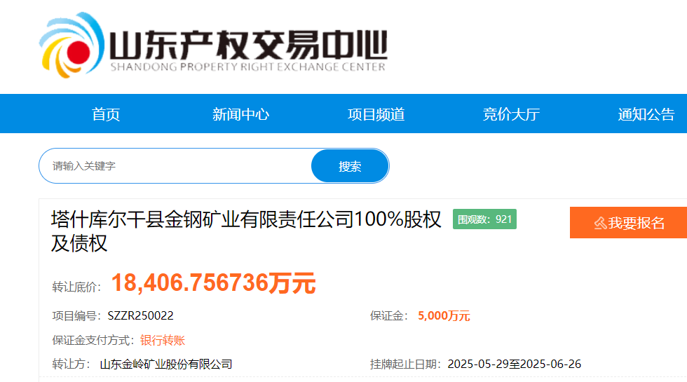近日,塔什库尔干县金钢矿业有限责任公司(下称“金钢矿业”)100%国有股权及债权转让在山东产权交易中心正式挂牌,转让方为山东金岭矿业股份有限公司(下称“金岭矿业”,000655.SZ),底价1.84亿元。记者注意到,金钢矿业长期处于停产状态。截至去年12月31日,金钢矿业的资产总额为1865万元,负债总额为6.46亿元,净资产为-6.27亿元。