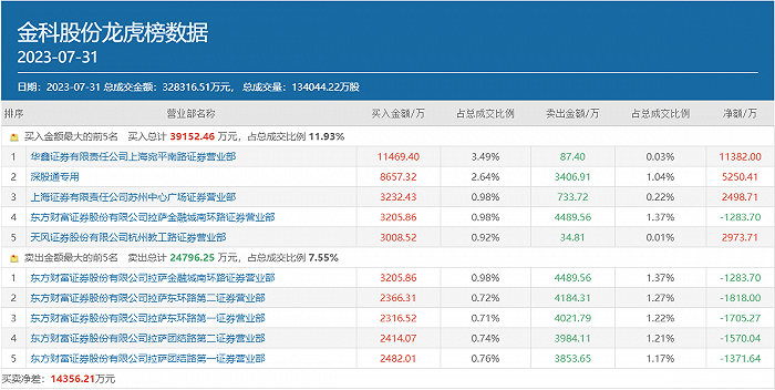 事实上,7月27日华鑫证券上海宛平南路就曾出现在金科股份龙虎榜买方前五位中,买入金额为6205.63万元,并且在之后的7月28日以及7月31日连续两个交易日里,上述席位均未出现在该股卖方前五位中,炒股养家买进的这部分仓位大概率选择了继续锁仓。