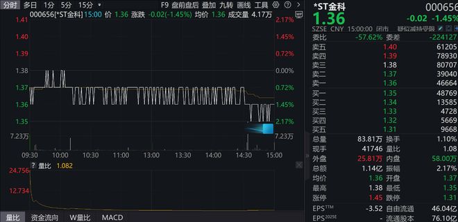 2026年3月19日,*ST金科股价在低位窄幅波动,市场情绪谨慎。