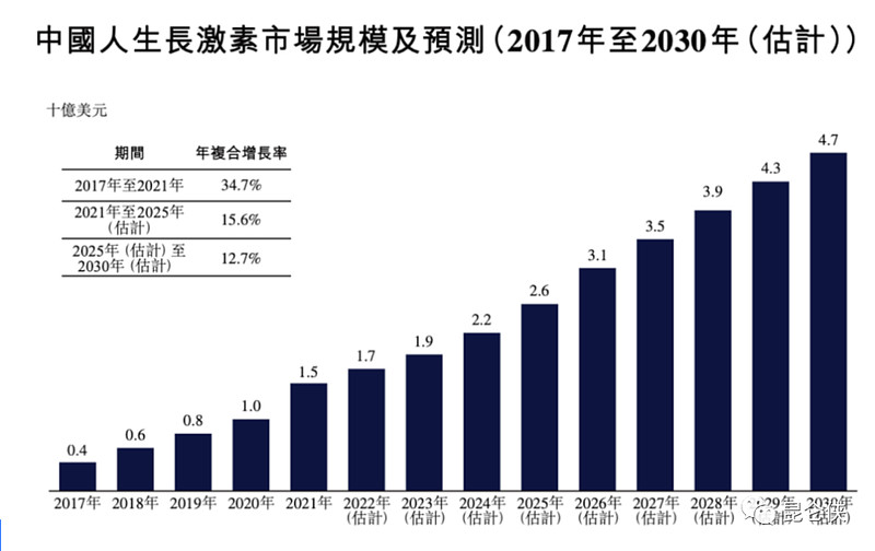 据知名咨询机构Frost&Sullivan数据,我国重组人生长激素的市场规模由2017年的4亿美元迅速增长至2021年的15亿美元,年复合增长率(CAGR)为34.7%,超过美国,成为全球最大的市场。