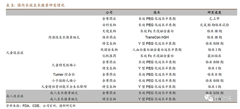 而天境生物、特宝生物等企业的生长激素,已经处于临床三期阶段。