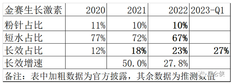 2022年,金赛药业推出了长效“卡瓶式+隐针电子笔”包装,进一步提升长效的依从性,同时下调了长效针的价格而短效水针价格保持不变、进一步提高长效相对水针的性价比,所以我预计2023年长效的销售占比应该可以进一步提升到30%以上。