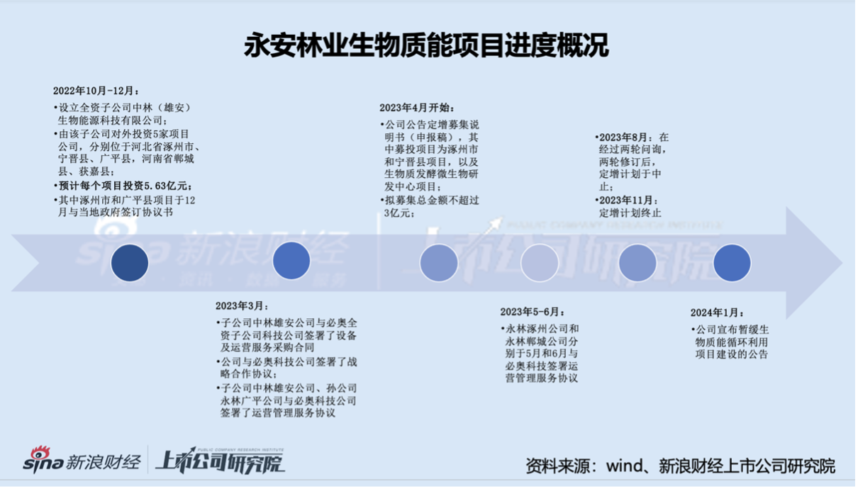 近日,永安林业宣布暂缓生物质能循环利用项目建设,预计暂缓建设时间不超过2个月,原因主要为项目实施地近期频繁遭受寒潮、大雪等恶劣天气,无法有效施工。而联系起在11月份刚刚终止的定增计划,募投项目正是2个生物质能循环利用项目以及1个生物质发酵微生物研发中心项目,是否也对相关项目进度存在一定影响等有待验证。