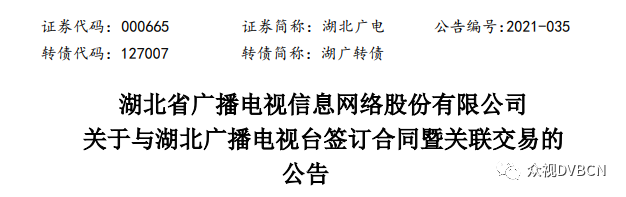 除年报外,湖北广电日前还发布了《湖北省广播电视信息网络股份有限公司关于与湖北广播电视台签订合同暨关联交易的公告》。