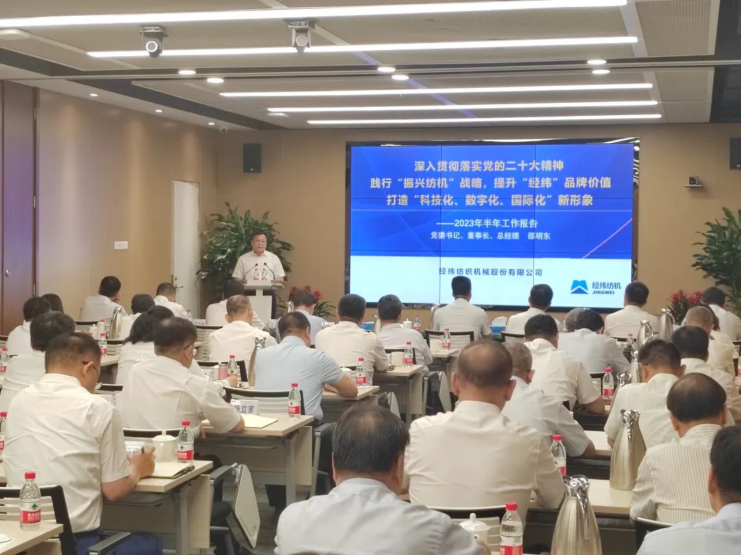 会上,公司党委书记、董事长、总经理邵明东同志作了题为《深入贯彻落实党的二十大精神,践行“振兴纺机”战略,提升经纬品牌价值,打造科技化、数字化、国际化的新形象》的报告,全面回顾总结了上半年的工作亮点,充分肯定了各企业、各部门取得的优异成绩,分析总结了现阶段公司面临的形势和问题,提出了下阶段的工作举措。上半年,在国机集团、恒天集团的正确领导下,全体经纬人紧紧围绕“聚焦主业、敦本务实、改革创新、提质增效”的经营方针,以奋发有为的精神状态和时不我待的奋斗姿态,主动作为,创新模式,大胆突破,抢抓市场机遇,生产经营跑出了“加速度”,主要经济指标逆势上行,超额完成了“双过半”目标任务。下半年,公司将统筹推进“科技化、数字化、国际化”总体布局,协调推进“振兴纺机”、提升“经纬”品牌价值战略,坚持稳中求进工作总基调,全面围绕“做实纺机主业、做强工艺质量、做精科技创新、做优数字化赋能、做好服务增值”等方面开展各项工作,明晰战略举措,统筹业务布局,全面防控风险,提高“经纬”品牌价值,加速推进公司高质量持续稳定发展。